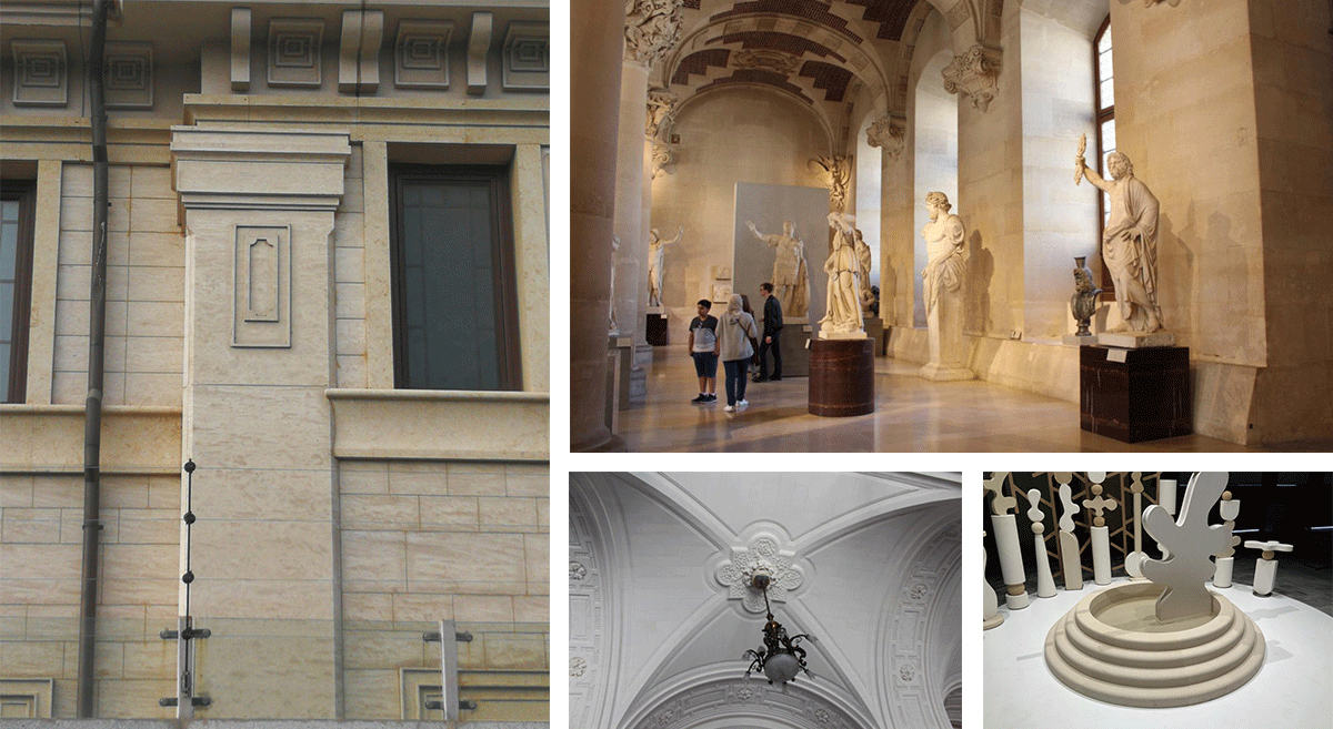 萊姆石作為設(shè)計(jì)師喜歡的材料在建筑中被反復(fù)使用,更是歐洲宮廷御用石材,其由數(shù)十億年前大量貝殼類小動(dòng)物的外殼化石所組成,由于沉積年限不同,經(jīng)過地?zé)峒暗貧毫Φ淖兓蟪尸F(xiàn)出軟硬度不同的石材,它的美觀程度,紋理韻味,其他石材難以相比。