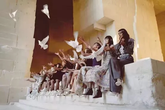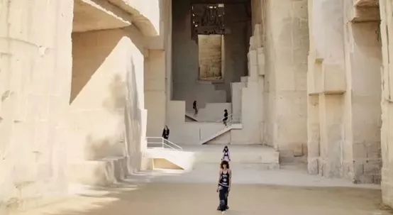 就在前不久的香奈兒早春發(fā)布會就在光影采石場成功舉辦。這是一場極具幾何美感的發(fā)布會。模特們從黑暗的走廊走出,穿過星光點點的「隧道」,進入到空曠的戶外廣場,周圍是高聳明亮的萊姆石墻壁。